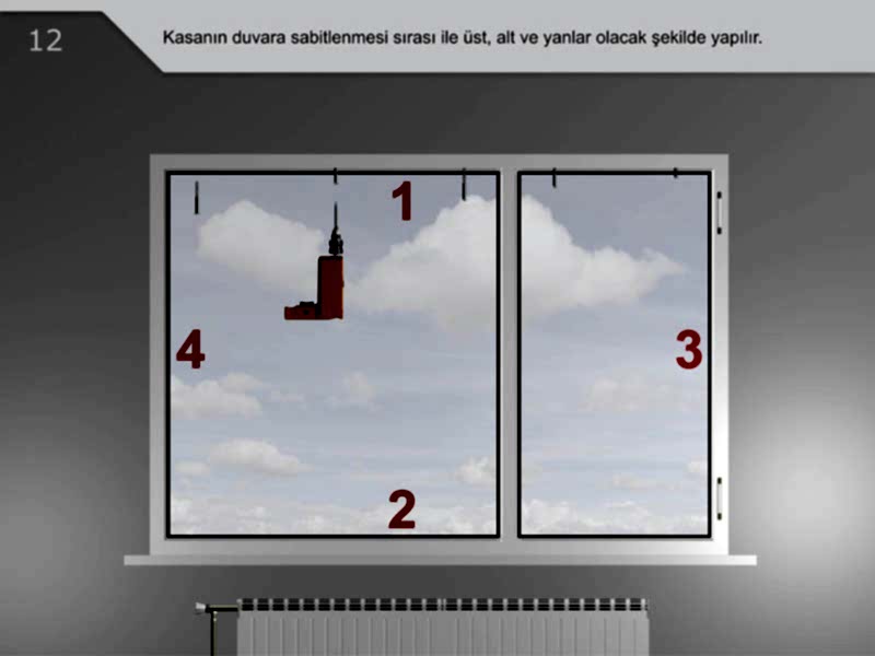 Kasanın duvara sabitlenmesi sırası ile üst, alt ve yanlar olacak şekilde yapılır.