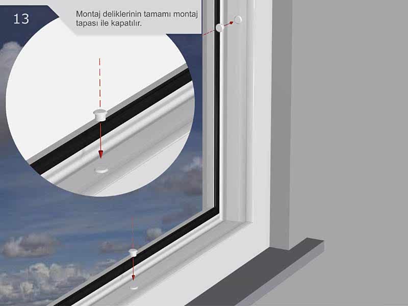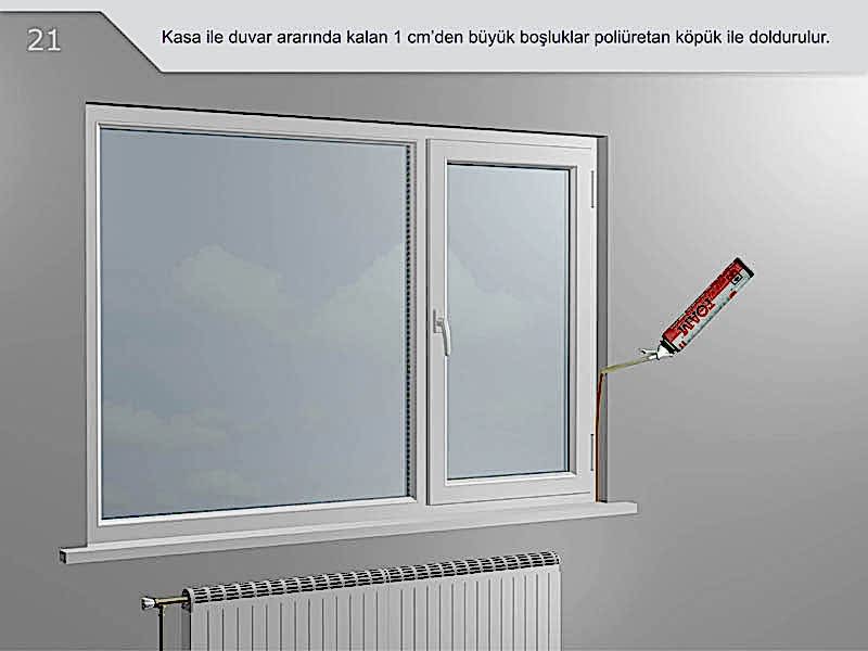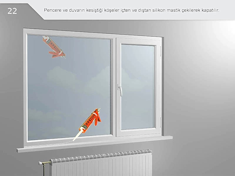 Pencere ve duvarın kesiştiği köşeler içten ve dıştan silikon mastik çekilerak kapatılır.
