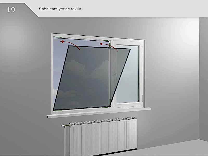 Sabit cam tarafının tüm cam çıtları yerine çakılır.